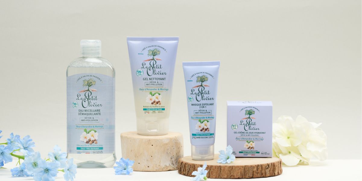 我們的抗污染系列產品含有高天然成分的百分比。它們不含對羥基苯甲酸酯、酒精和有機矽。每個配方中,杏仁花都與辣木提取物,消除和保護皮膚來自一整天積累的空氣污染物。